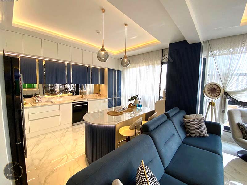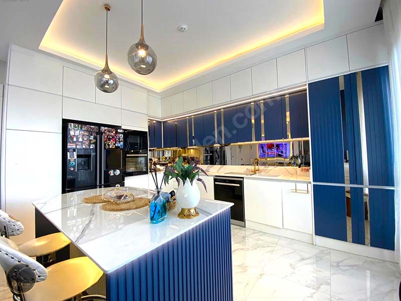 Açık mutfak (Amerikan mutfak) tasarımı, modern ev konseptiyle uyumlu olup geniş yaşam alanına bütünleşik bir kullanım sağlar. Ev içerisinde kullanılan tüm malzemeler, yüksek kalite standartlarına uygun olarak seçilmiştir.